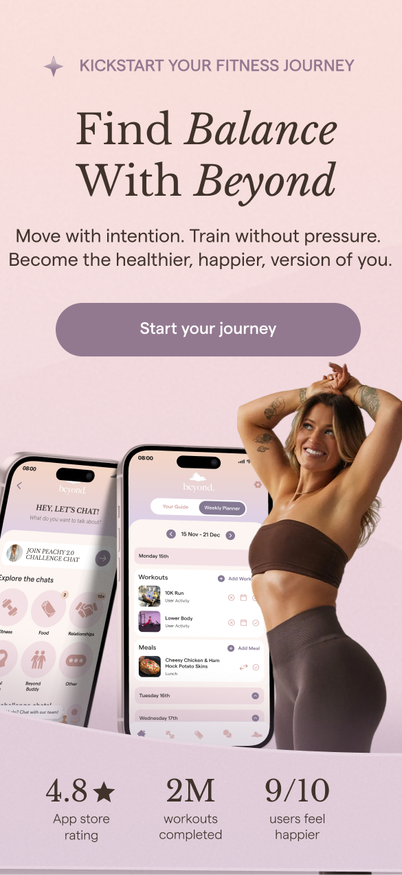 Since joining Beyond this year it has given me the motivation to stick with a workout program that I am loving doing. It’s completely different to what I was doing but it’s been the best change I’ve made, I love how the plan is set out and that it focuses on areas of my body that I wouldn’t of trained before. I love the little motivational messages that pop up when I open the app ❤️ It’s also made me focus more on self love and my journey with my health and fitness. Thank you Beyond for coming into my life 🤍